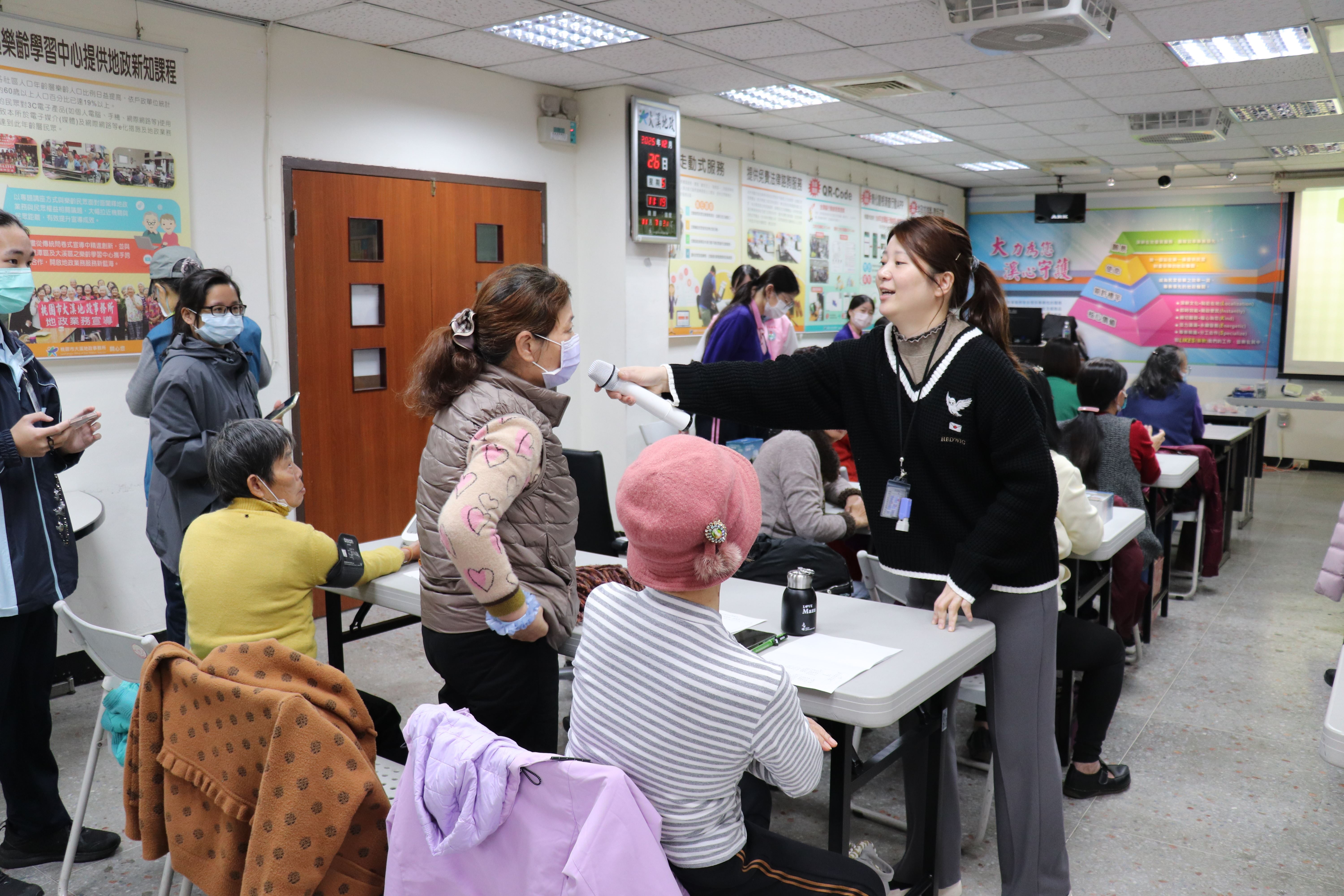 特別邀請 新生醫護管理專校林韋均老師,為大家講解防癌觀念與健康飲食的重要性,並實際教導志工夥伴如何正確測量自己的血壓,關心他人服務之餘,也不忘照顧自己的健康